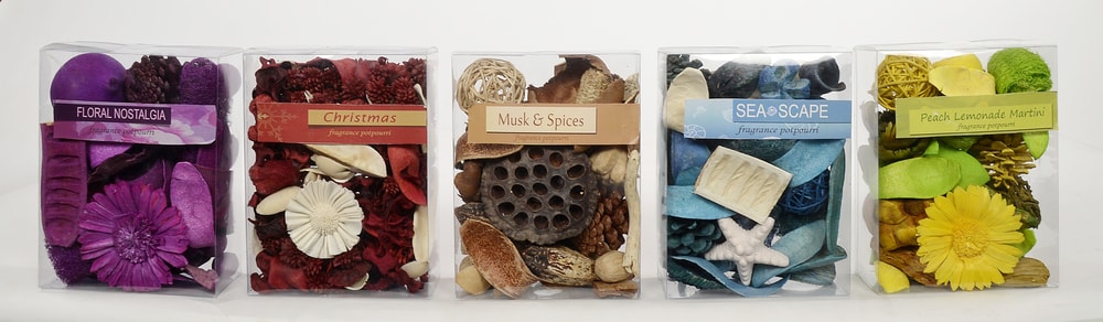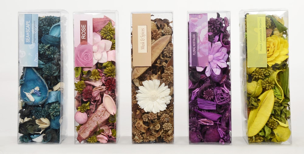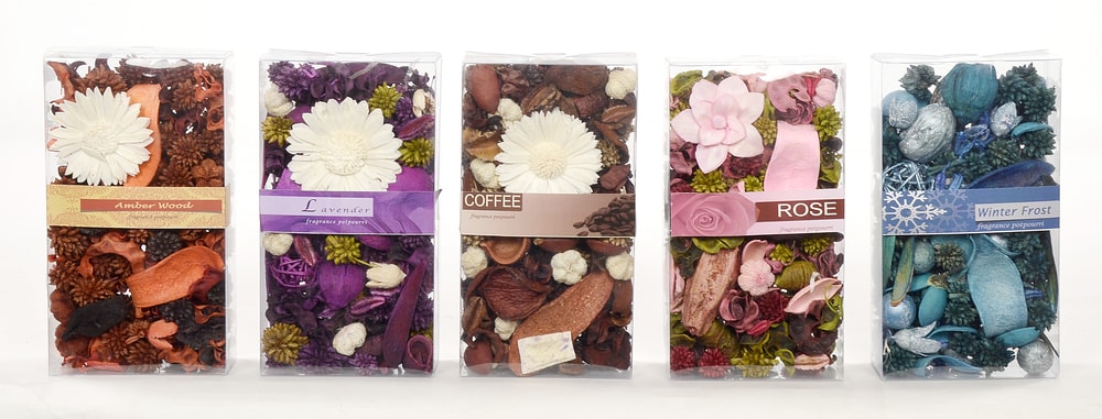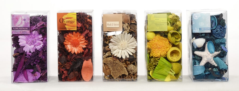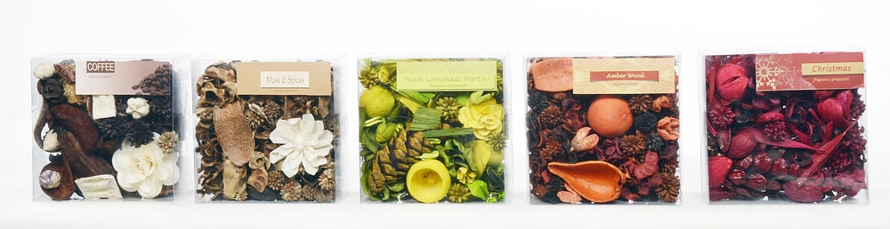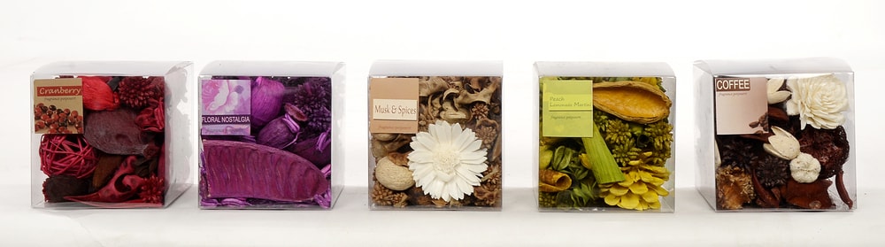 These are a mixture of natural dried botanicals. Specific spices, herbs, and essential oils are added as buyer customer preferences and they come in a variety of flavours. These decorative potpourri with its colors and fragrance adds aroma and character to the ambience. Different styles of packaging make it highly saleable.