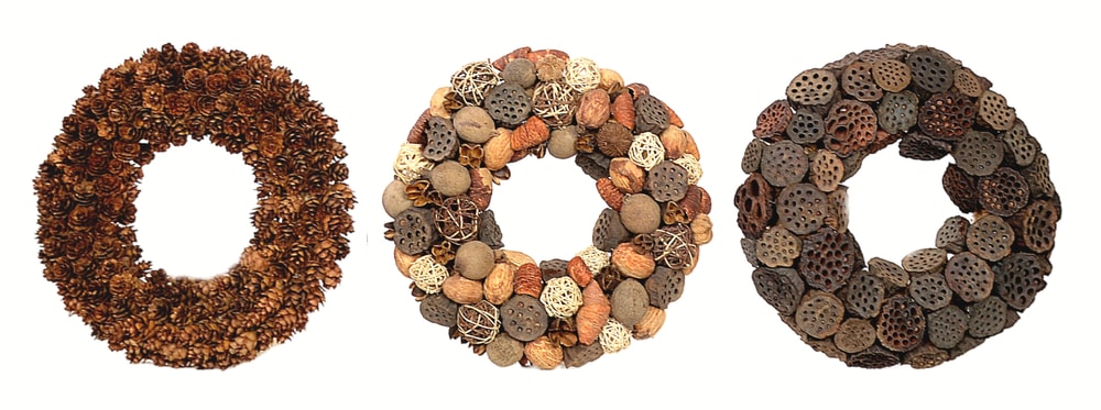 Wreaths come in natural and various colors reflecting seasonal or festive moods. Christmas wreath is one of the most popular holiday decorations and is commonly seen on the stairway, hanging on walls or doors, or even as a centerpiece on a table. This circle or ring shape décor is symbolic of eternity or eternal life, because the shape has no beginning or end.